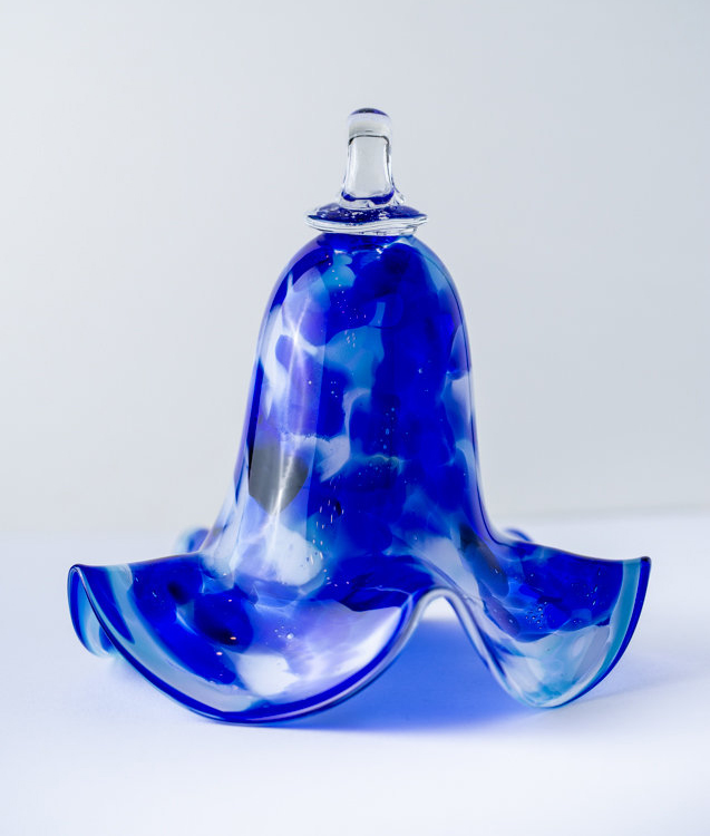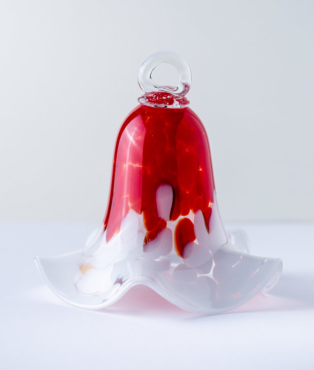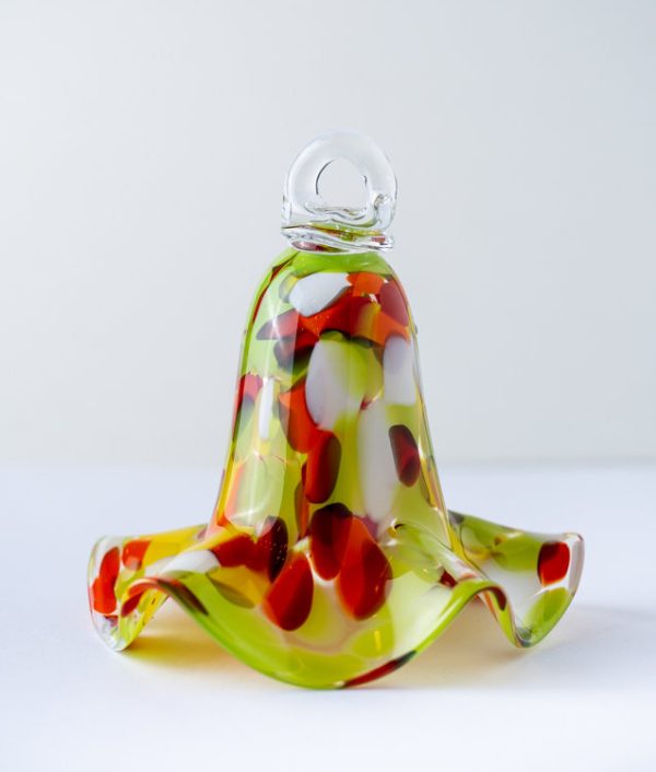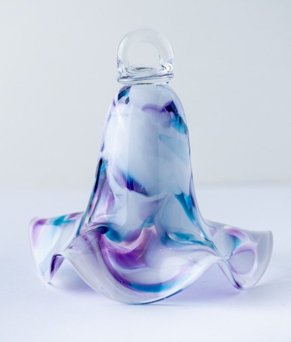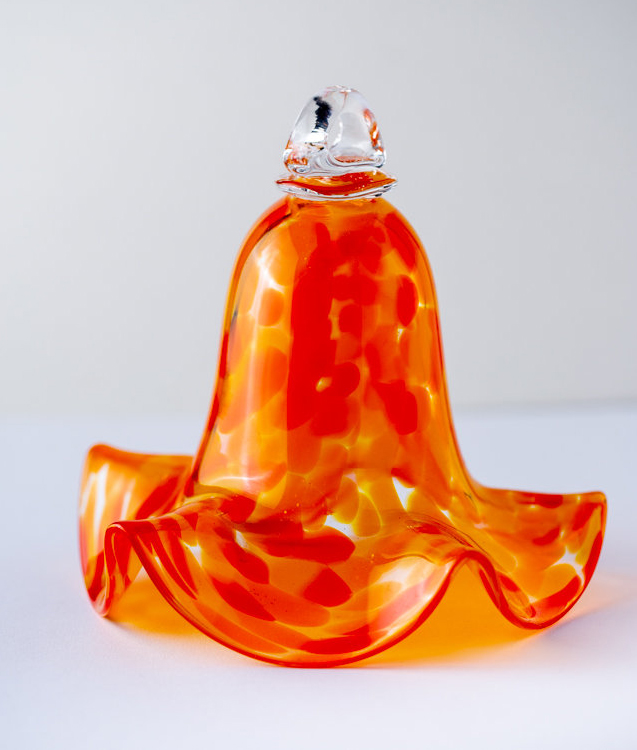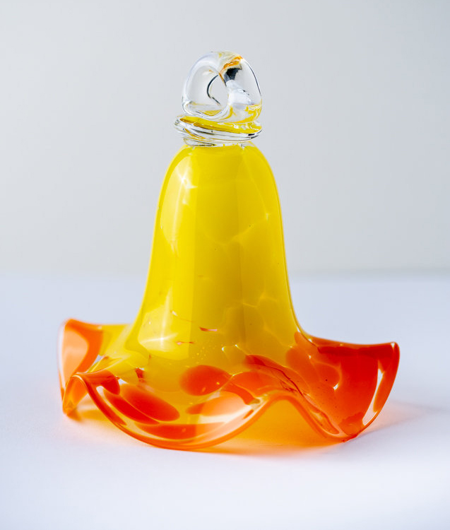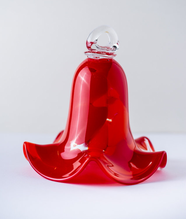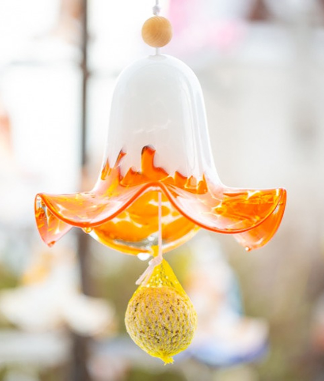 Mundgeblasenes Farbglas mit Kordel und Holzkugel.