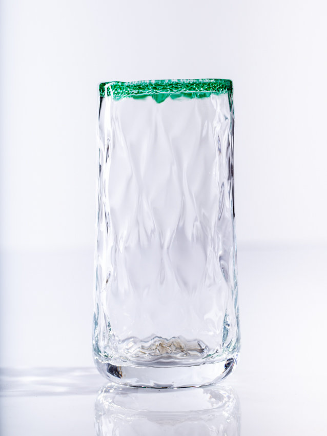 Optik Glas klar mit grünem Steirerglas-Rand.